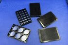 The lineup are: Five black microplates (6-well, 24-well, 96-well, 384-well, and 1536-well) and Three white microplates (96-well, 384-well, and 1536-well).