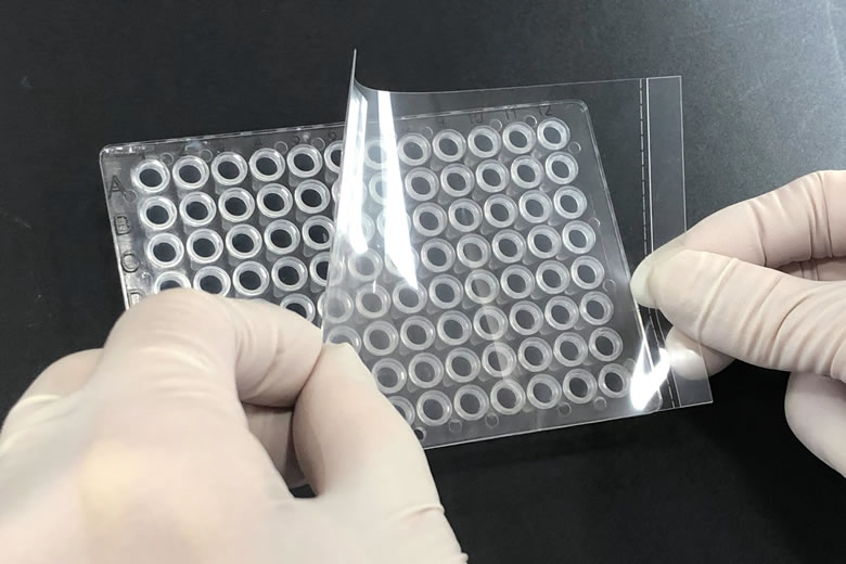 CSTEC handles processing of microplate seals and adhesive tape for the bottom of plates, and lamination of components. We manufacture and process seals with shapes different from commercial microplate seals, for example, microplate seals with oxygen permeability functions, starting from small quantities.
